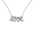 Efektný náhrdelník z bieleho zlata, ktorému dominuje trblietavý briliantový nápis love. Výrazný šperk, ktorý sa riadi horúcimi módnymi trendami, ktoré nosia aj svetové celebrity.