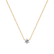 Pôvabný náhrdelník s minimalistickým dizajnom so žiarivým briliantom na vás dokonale vynikne. Jemná retiazka zo 14kt bieleho, ružového alebo žltého zlata je spojená s dominantným diamantom, ktorý môže byť v rôznych veľkostiach. Dokonalý šperk z kolekcie ALOve Classic First je vhodný na bežné nosenie