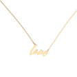 Šperk plný lásky. Minimalistický náhrdelník z kolekcie ALOve No Ordinary Words z bieleho, žltého alebo ružového zlata s výrazným nápisom Love, ktorý zdobí trblietavý diamant.
