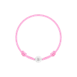 Skvelým tipom na darček je detský náramok s farebnou šnúrkou. Náramok je zdobený 14kt zlatou platničkou v bielej, ružovej alebo žltej farbe s písmenom a drobný diamant dodáva náramku krásny lesk.