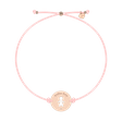 Náramok z kolekcie Family tvorí červená šnúrka a rozkošný prívesok dievčatka alebo chlapčeka zo 14kt žltého, ružového alebo bieleho zlata s trblietavým diamantom.
