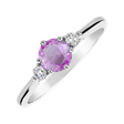 Luxusný prsteň s centrálnym ružovým zafírom je z každej strany doplnený čírym briliantom. Jemná obrúčka je vyrobená zo 14-karátového ružového zlata. Šperk je úžasný ako zásnubný prsteň alebo očarujúci darček.