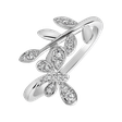 Okúzľujúci prsteň ALOve zo 14kt bieleho zlata s efektným detailom v podobe motýlika a lístka s trblietavými diamantmi pre každú ženu i príležitosť.