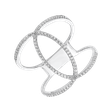 Luxusný prsteň z bieleho 14kt zlata tvoria dva krúžky, ktoré sú navzájom prepletené a ozdobené trblietavými diamantmi. Prsteň je vďaka svojmu dizajnu výrazný a zaručene neprehliadnuteľný.