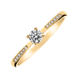 Luxusný zásnubný prsteň, ktorý jej vyrazí dych. Jemná zlatá obrúčka s centrálnym briliantom a menšími postrannými briliantmi je jedinečný šperk pre lásku vášho života. Žlté 14kt zlato, diamanty, nadčasový dizajn a nezameniteľný lesk tvorí z tohto prstienka naozaj výnimočnú voľbu.