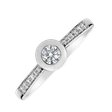 Elegantný diamantový prsteň z bieleho zlata je skvelá voľba pre žiadosť o ruku, ale aj nádherný darček. Minimalisticky okrúhly dizajn centrálne vsadeného kameňa je zvyraznený žiarivými briliantmi po stranách.