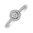 Nádherný 14kt zlatý prsteň posiaty briliantmi je vyrobený v halo štýle. Centrálny diamant obklopený menšími je obľúbený dizajn pre zásnubné prstene. Tento trblietavý kúsok v bielom zlate je naozaj výnimočný šperk, ktorý si zamilujete.