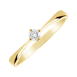 Vďaka klasickému dizajnu je prsteň vhodný najmä na žiadosť o ruku, ale aj ako očarujúci darček. Je vyrobený zo 14-karátového zlata s briliantom osadeným v štyroch krapnách. Zúženie obrúčky necháva nádherne vyniknúť centrálny drahokam.